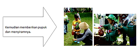 Pak Dudung membagikan biji kangkung super kemudian kami memasukkan biji tersebut pada tanah yang sudah diberi lubang lalu