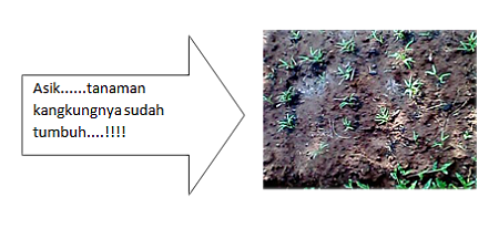 Tunas-tunas muda mulai tumbuh di minggu ke-3,kami kembali menyiram dan memberikan pupuk pada tanaman kangkung .Aku jadi senang melihatnya sudah tumbuh.