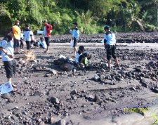 Kami belajar dari alam. Ini lebih seru lagi….kami tracking ke kali Boyong. Kali Boyong adalah kali yang saat ini masih suka dialiri lahar dingin dari puncak Merapi. Tapi tentunya dengan dampingan kakak-kakak ACT yang memastikan kali Boyong aman untuk diobservasi. Kami belajar jenis-jenis dan bentuk batuan alam hasil letusan gunung Merapi. Oh ya, kami juga mengamati jenis-jenis flora dan fauna yang kami temukan selama tracking.